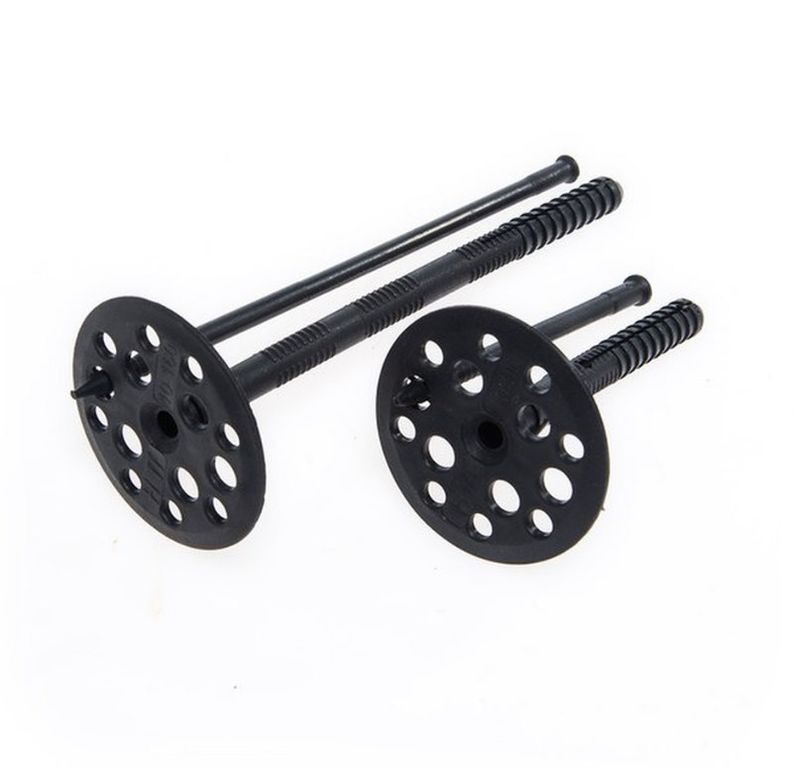 - Дюбели с пластиковыми гвоздями способны выдерживать перепады температуры от -40°C до +80°C, рассчитаны на нагрузку от 20 до 380 кг/м2. В большинстве случаев данных показателей достаточно и домовладельцы решают экономить, покупая дюбели с пластиковыми гвоздями. Но для тяжёлых, толстых утеплителей пластиковый гвоздь — это ненадёжно;