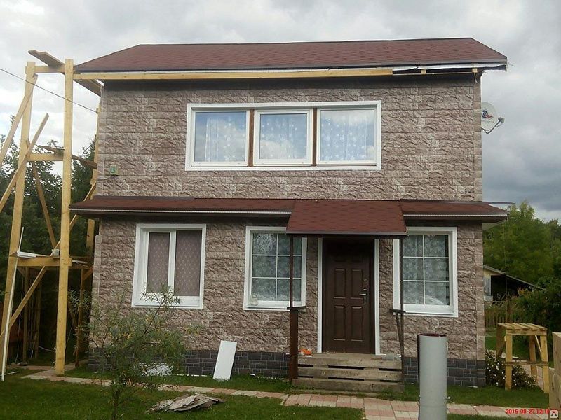 Серия фасадных панелей DOCKE FELS имеет фактуру под крупный фасадный тесанный камень, уложенный разного размера элементами с краями и выступающей, ограненной поверхностью. Швы между имитацией камней имеют вогнутую форму и однородный цвет, играя тенью и выделяя фактуру поверхности. Панели стыкуются друг с другом бесшовным способом, тем самым образуя на фасаде единое полотно под каменную облицовку. Выполненные из полипропилена, фасадные панели стойки к УФ, просто монтируются на фасаде на заранее выставленную обрешетку.