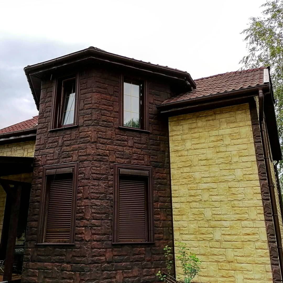 Крупные элементы, имитирующие сложную кладку из грубо отёсанных гранитных камней, идеально подходят для обшивки стен больших особняков, а также для оформления цокольной части дома. Фактура серии «Гранит» видна с большого расстояния и отлично сочетается с сериями фасадных панелей мелких и средних фактур.