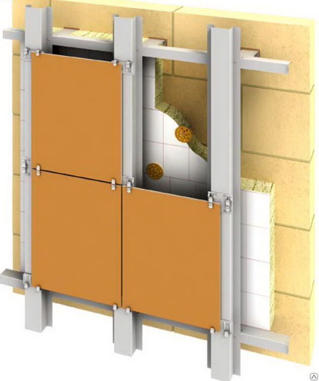 Кронштейн для крепления направляющих каркаса вентилируемого фасада. Имеют несколько размеров, что позволяет выровнять плоскость фасада.
