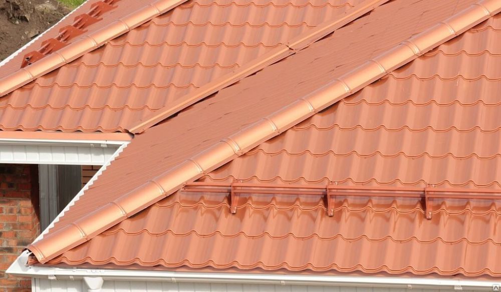 Металлочерепица Ламонтерра - это стальные листы с волнообразным профилем, имитирующим натуральную черепицу. Внутренняя сторона обработана защитным серым лаком, а лицевая - полимерным покрытием. Допустимый уклон крыши - 12 градусов.