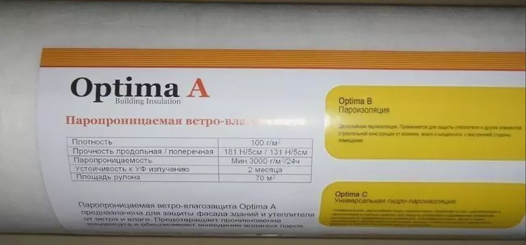 Паропроницаемая ветро-влагозащита Optima A предназначена для защиты фасада зданий и утеплителя от ветра и влаги.