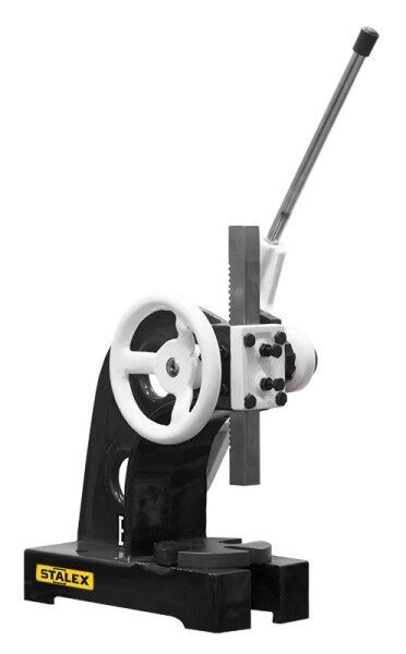 Используется в ремонтных и производственных целях. Благодаря высококачественным зубьям, пресс позволяет впрессовывать подшипники, втулки и различные другие детали небольшой высоты. Усиленная Т-образная конструкция из плотного металла не деформируется в процессе работы. Усилие с рукоятки на шток передается с помощью зубчатой шестерни. Модель оснащена маховиком вращения, отвечающего за быстрое вертикальное перемещение штока. С другой стороны станка размещён рычаг с храповым механизмом, который преобразует вращательное движение в однонаправленное прерывистое движение – для чёткой и надежной запрессовкивыпрессовки деталей и узлов.