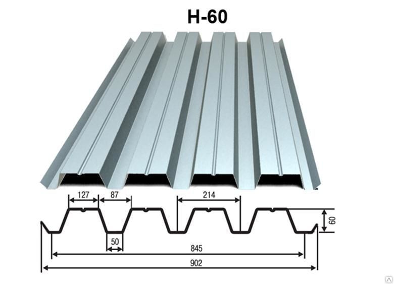 Профнастил Н60 – профилированный лист с высокой волной 60мм. Профиль оснащен дополнительными бороздами по поверхности гофры, благодаря чему удается повысить жесткость несущих частей дома или конструкции.