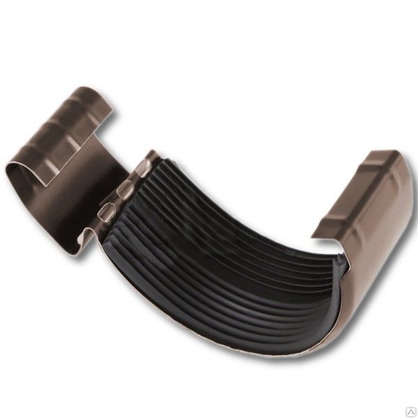 Соединитель (замок) желоба D125 обеспечивает надежное сопряжение желобов между собой. При соединении желобов между собой или с углами желоба их вставляют друг в друга с нахлёстом в 25-30 мм. На месте стыка обязательно устанавливают соединитель желоба с ЭПДМ прокладкой.