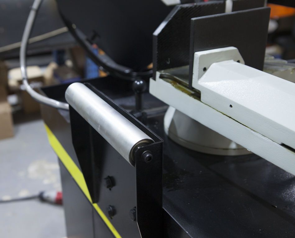 В рабочей зоне резания полотно точно ведется двумя направляющими головками. Станок европейского образца с возможностью поворота корпуса пилы от 0° до +60°, предназначен для пиления заготовок, под различными углами и при частой смене угла пила.