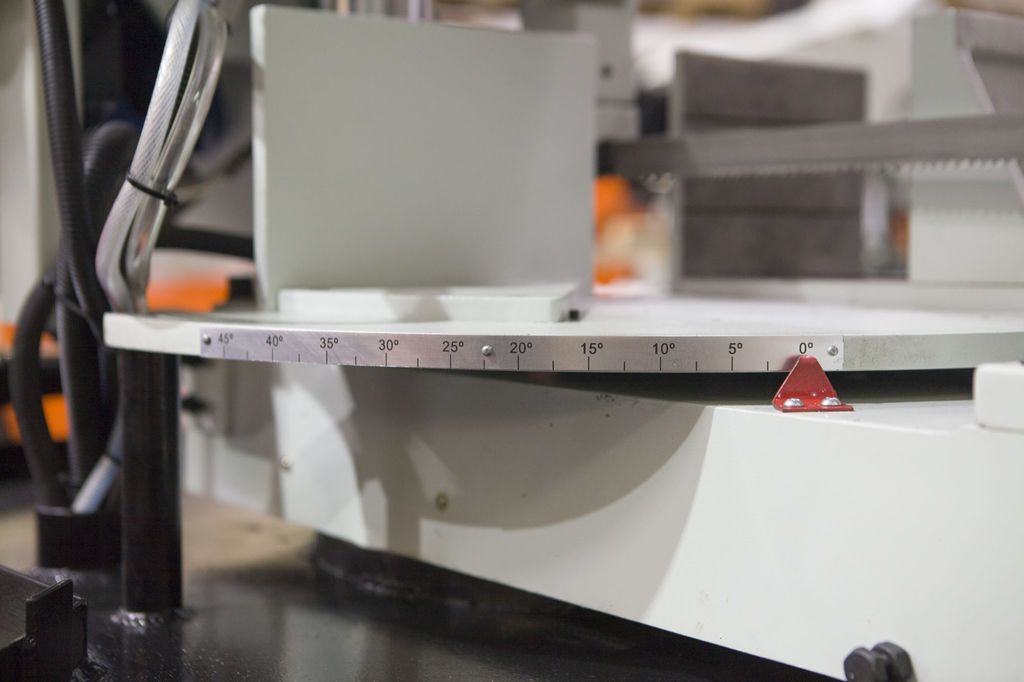 - Поворотный механизм при двухколонной конструкции (угол резки от 0°-30°-45°)