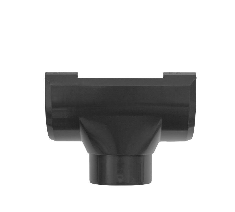 • Наличие универсальной пластиковой заглушки и универсального угла желоба 90 градусов, на которых имеется особая система крепления, позволяющая использовать заглушку и угол на любом торце водосточного желоба, т.е. без деления на левый и правый.